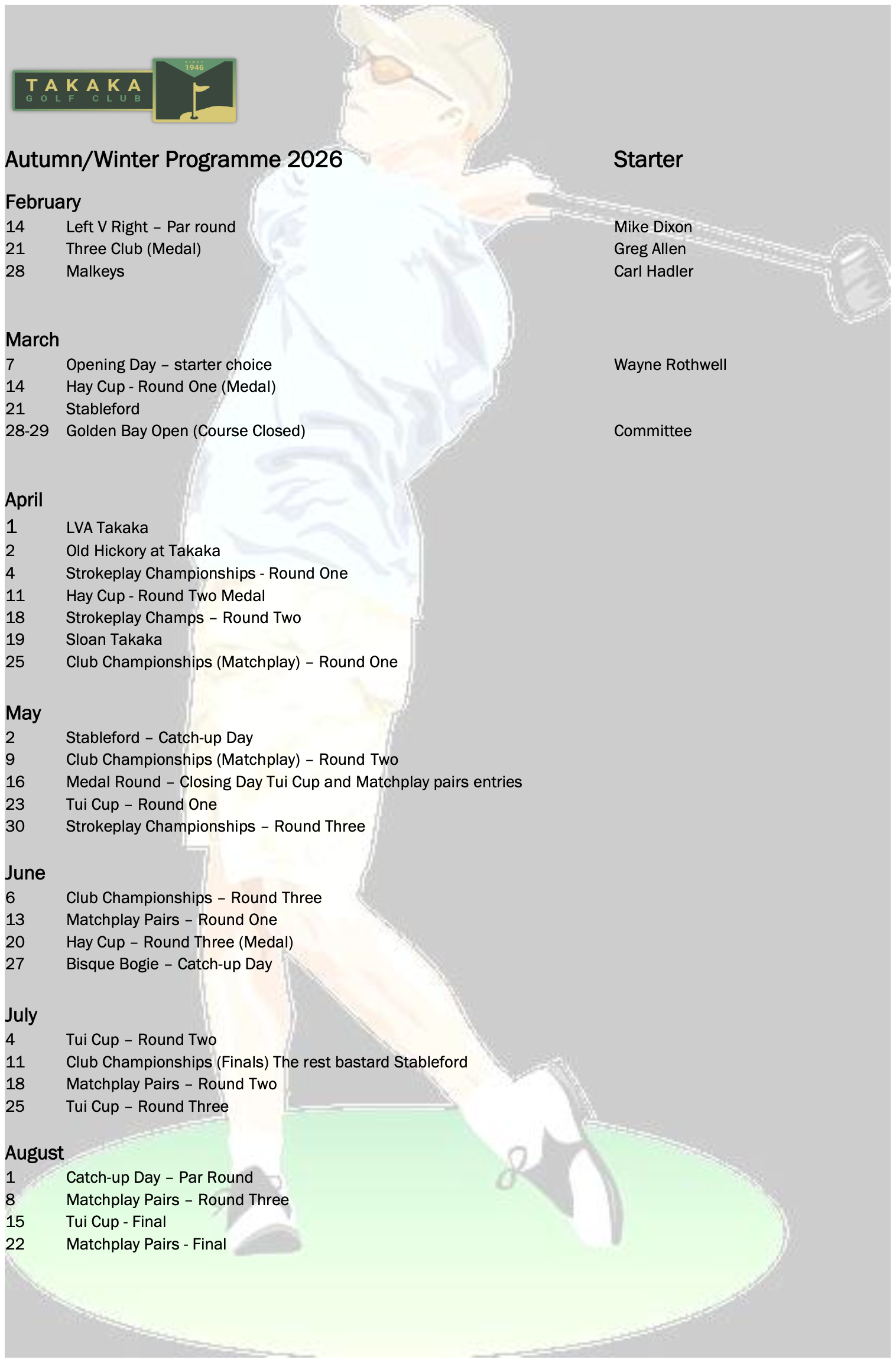 Club Days Programme